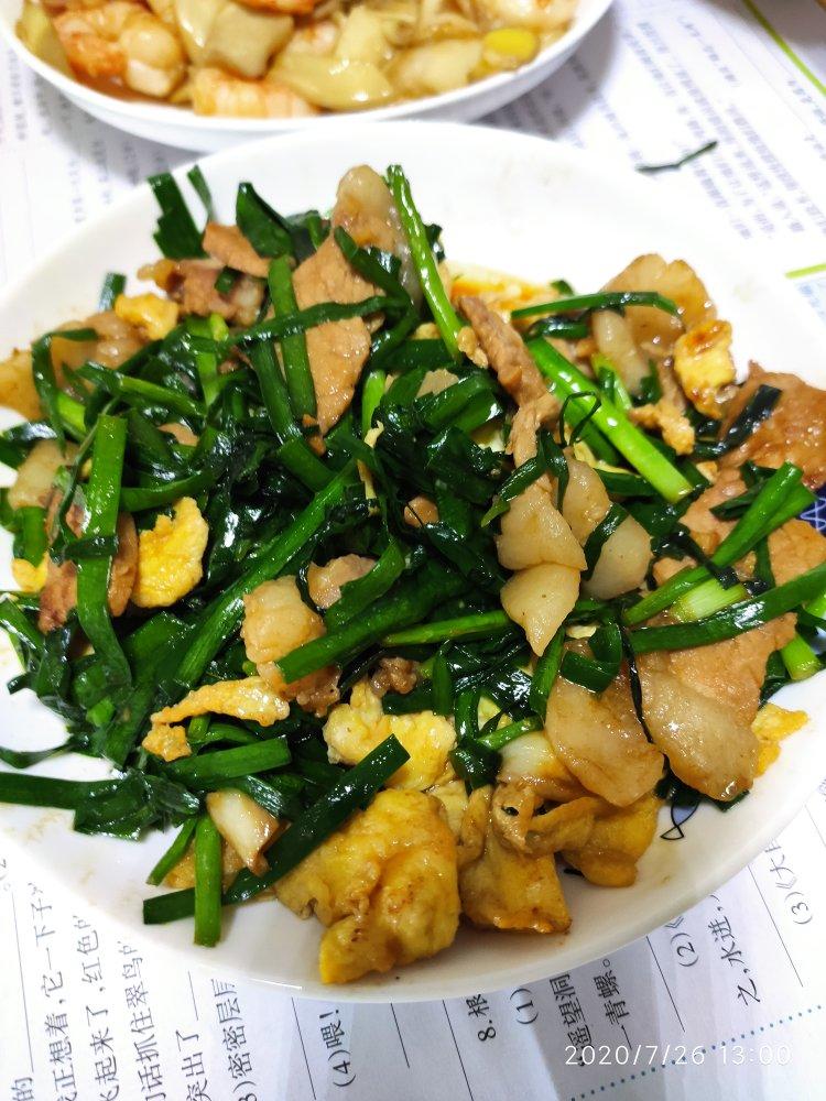 #午餐•2020年7月26日# 料酒,酱油,蚝油,盐腌制了下猪肉,猪肉肥瘦相夹,鸡蛋小火炒好放一边,猪肉大火炒熟,小火炸一下,再加韭菜后调味再加蛋大火炒,味道还是很好的。