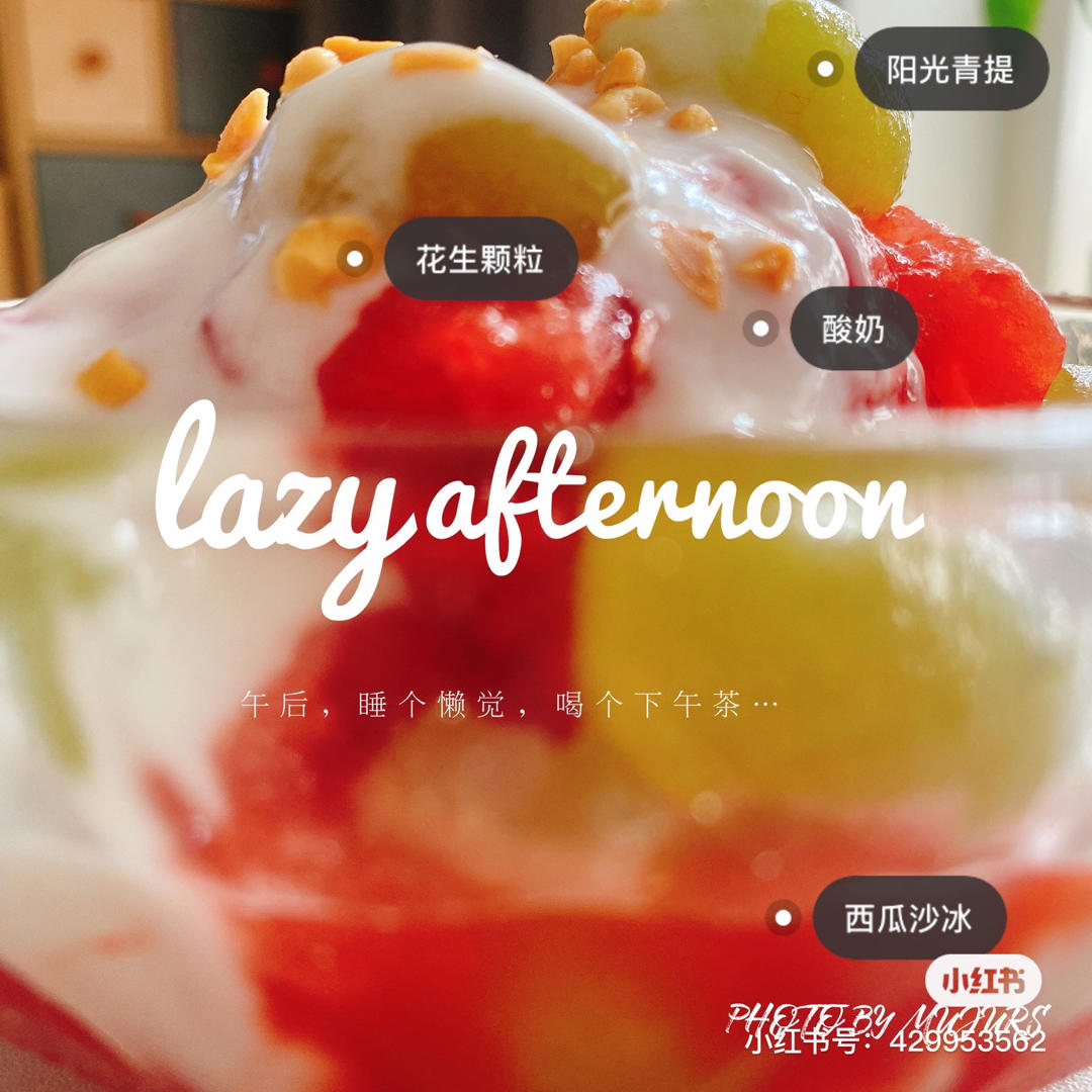 暖暖的早餐 做过 下午茶 ☕ 昨晚的火锅还没消化,今天上课是的鲜肉月饼和凤梨酥吃的饱饱的,来碗应景的西瓜晴王酸奶冰沙,开胃的下午茶。但是不能多吃,特别肠胃不好的小伙伴[捂脸]制作方法如下:1、西瓜去皮切小块速冻;2、破壁机打碎;3、撒上阳光玫瑰、酸奶,再加点花生颗粒!简单美味!#下午茶 ☕# 2020-07-27