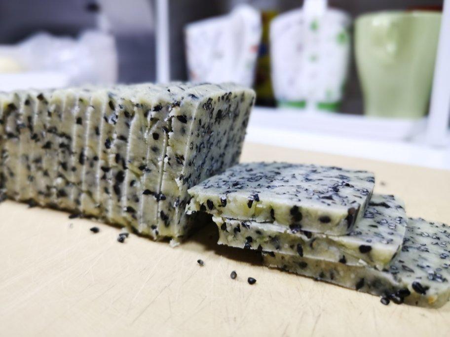 博博和妞妞妈妈 做过 黑芝麻海苔饼干(君之配方) 双倍量,正好一条饼干模具,冰箱冷冻一小时。切了40块,正好两炉。180度中层14分钟。泡打粉可以不加,不影响口味。第一次做时加了泡打粉,烤完看不出饼干有大小变化。入口酥脆,浓烈的芝麻香海苔香,咸甜适口。 2020-08-01