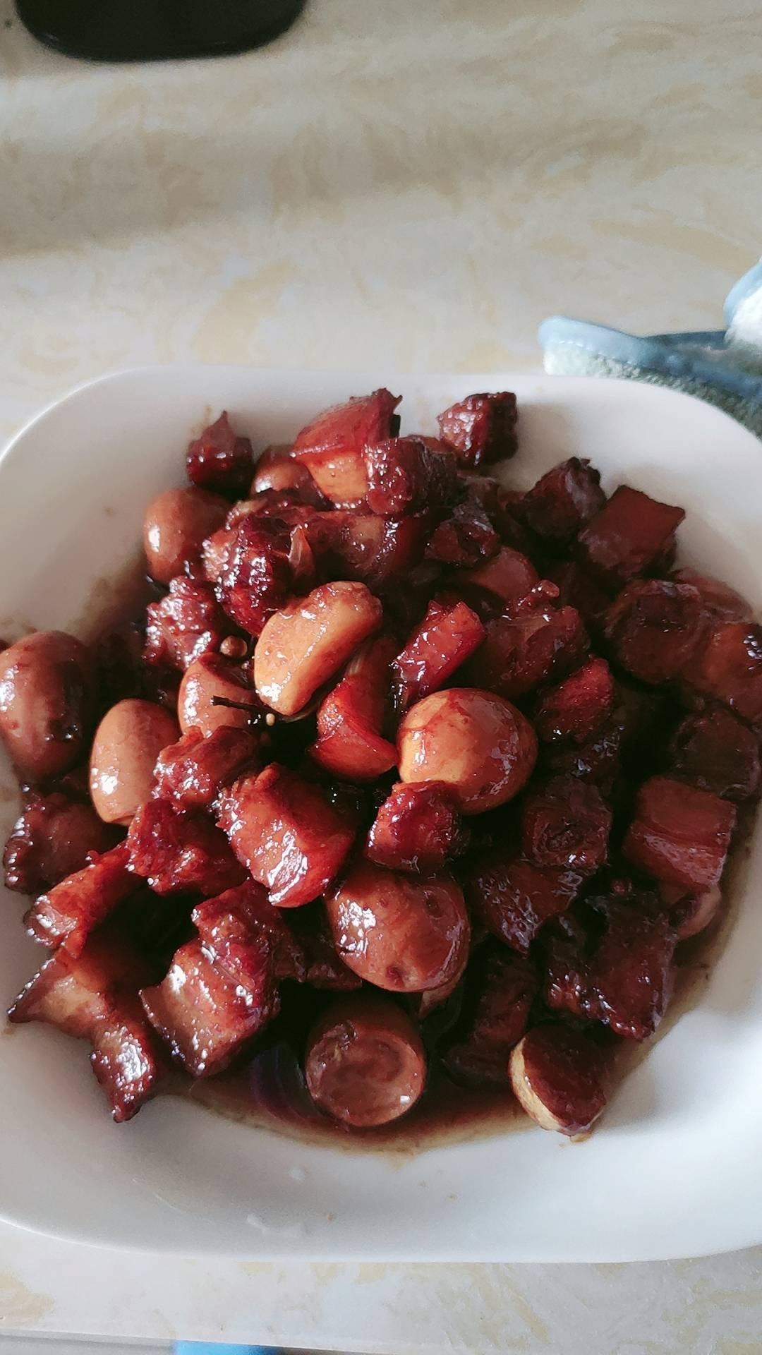加了鹌鹑蛋后,这盘红烧肉,美味的逆天啦——鹌鹑蛋烧肉(孔瑶食谱)