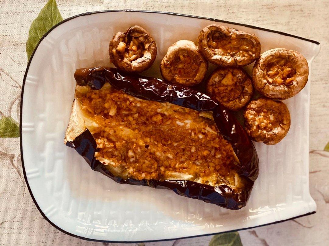蒜香茄子和口蘑。继续赞美空气炸锅。