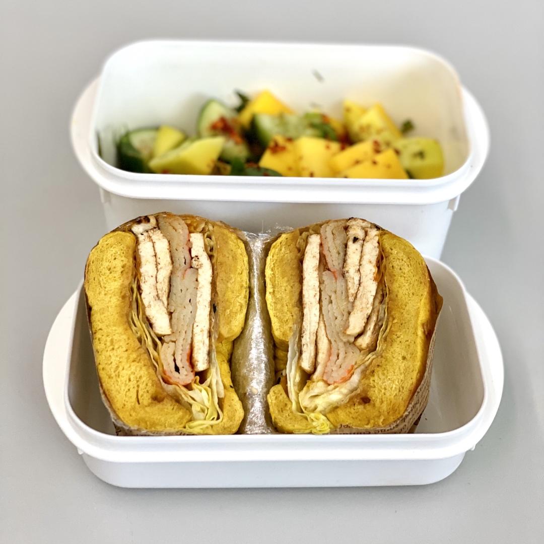 大尸T 做过 南瓜贝果 🥯非常好吃的搭配:韩式辣酱煎老豆腐➕撕碎的蟹柳➕无盐顺滑花生酱➕生菜叶🥗非常好吃的搭配:青芒果块➕青瓜块➕香菜碎➕苹果醋➕黑胡椒➕辣椒面嗯,非常满足😌#午餐•2020年8月19日# #健康吃健康瘦# 2020-08-19