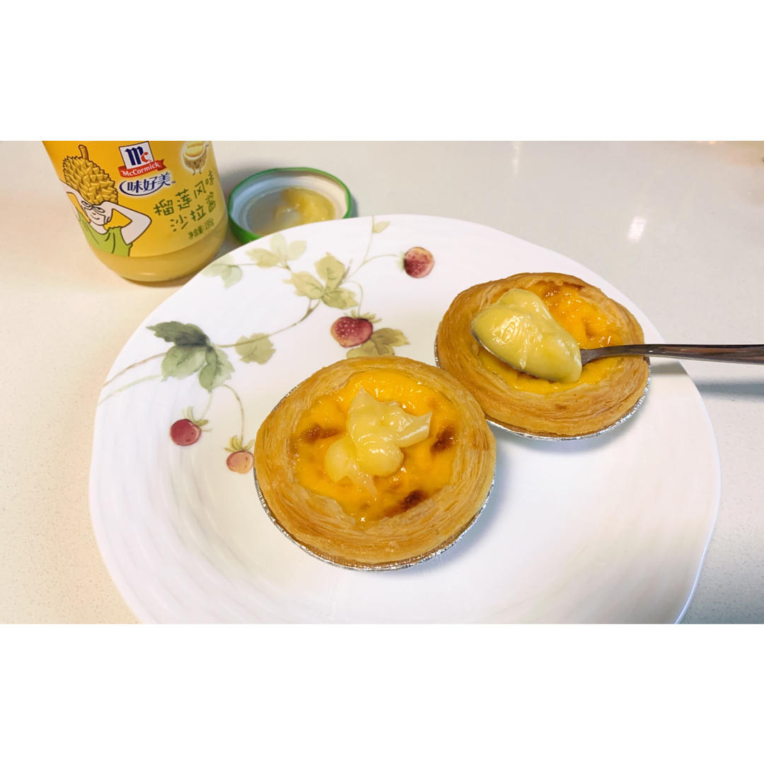 一盘蛋挞出炉,味好美让它们变得口味多样😋一勺榴莲味儿沙拉,完美🤩