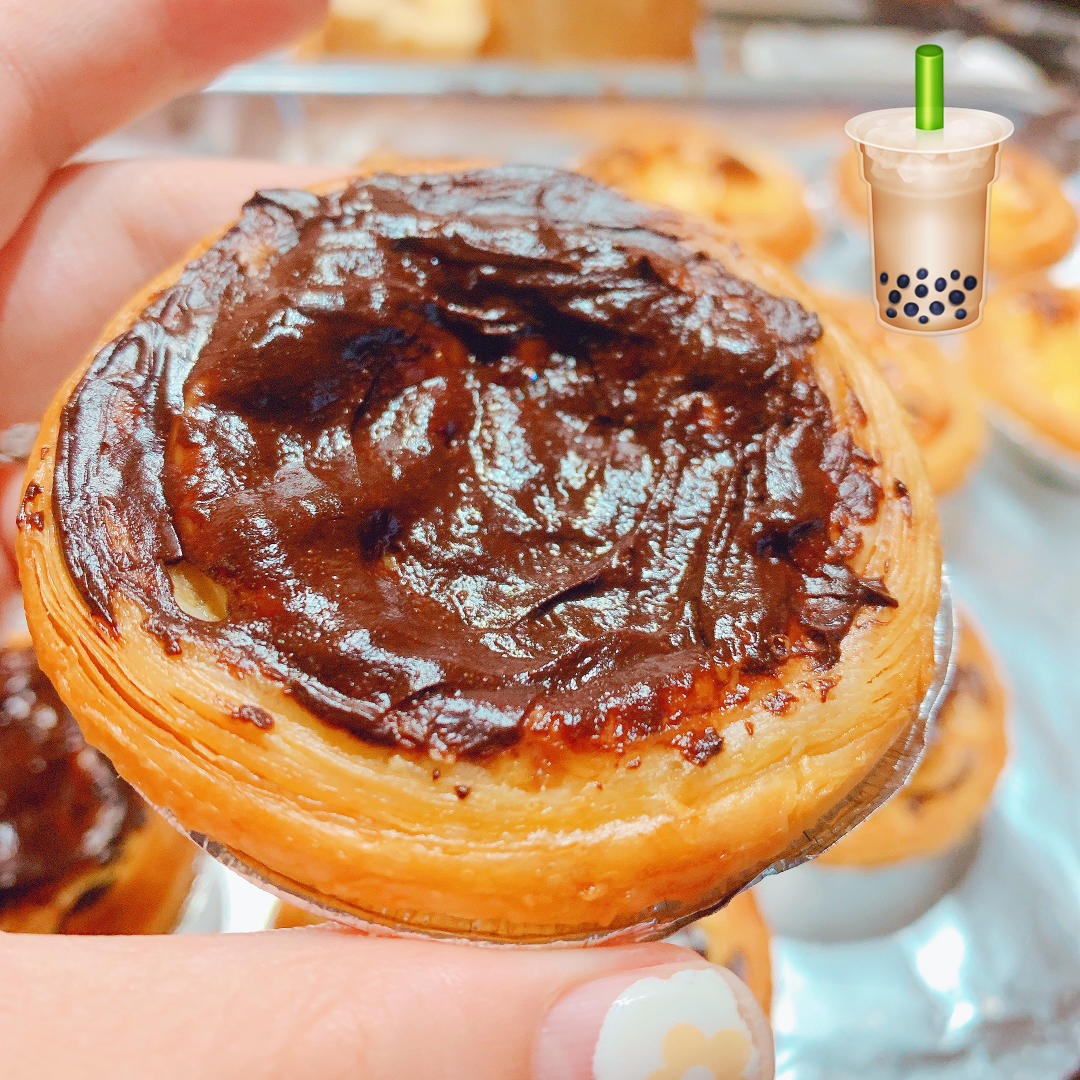巧克力弄碎,蛋挞液盖住