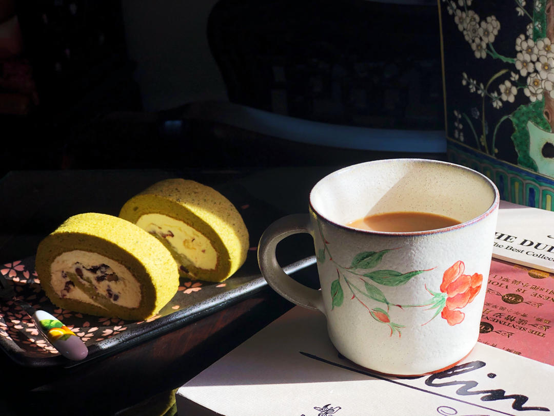 七夕,来一杯曼特宁咖啡,再来一块抹茶蜜豆蛋糕,心情美美的