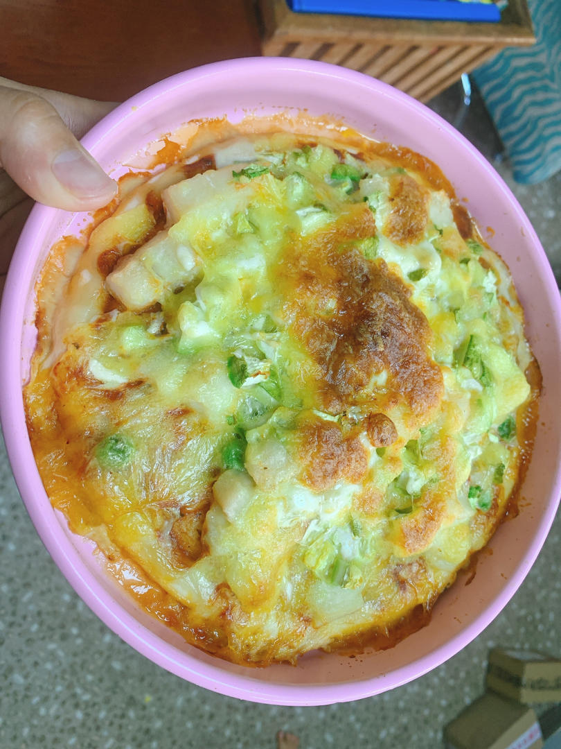 一条巴沙鱼➕黄瓜粒➕芝士奶酪➕干贝➕披萨酱