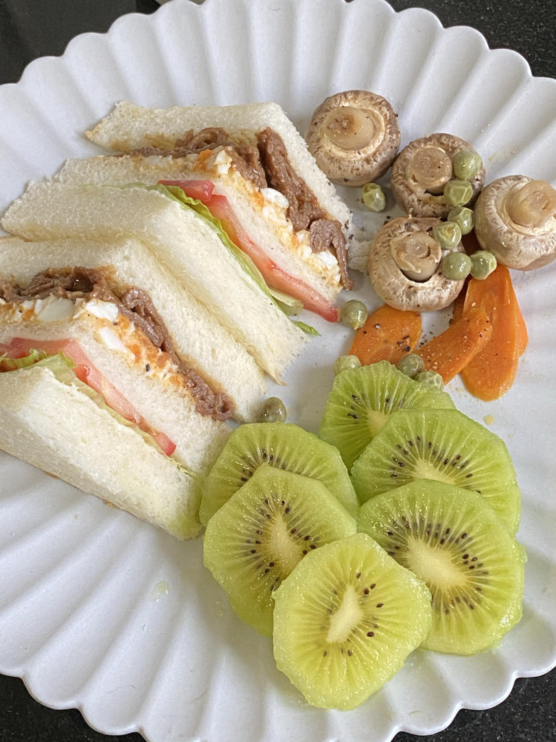 小羽-12 做过 夏季咖啡店爆款三明治 昨晚上现磨了一点豆浆,做了素蛋黄酱早上做了公司三明治🥪,给虎哥交个作业🤗用新鲜的牛肉代替了火腿片,木有芝士片也一样好吃😋#早餐•2020年9月3日# #接力自制幸福# 2020-09-03
