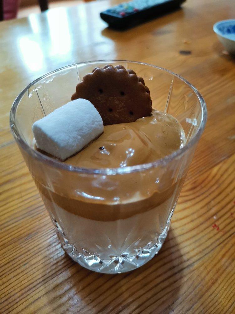蓝莓核桃仁 做过 韩式泡沫咖啡 用的电动打蛋器的高速挡,需要打久一些。速溶咖啡粉、糖和水基本是1:1:1的比例。只倒了100克的牛奶,混合后偏苦,像方子里那样多倒些牛奶口感应该会好些。记得拍照后和牛奶混合再喝哦,不然咖啡泡沫盖儿的这种苦甜一般可能接受不了。 2020-09-15
