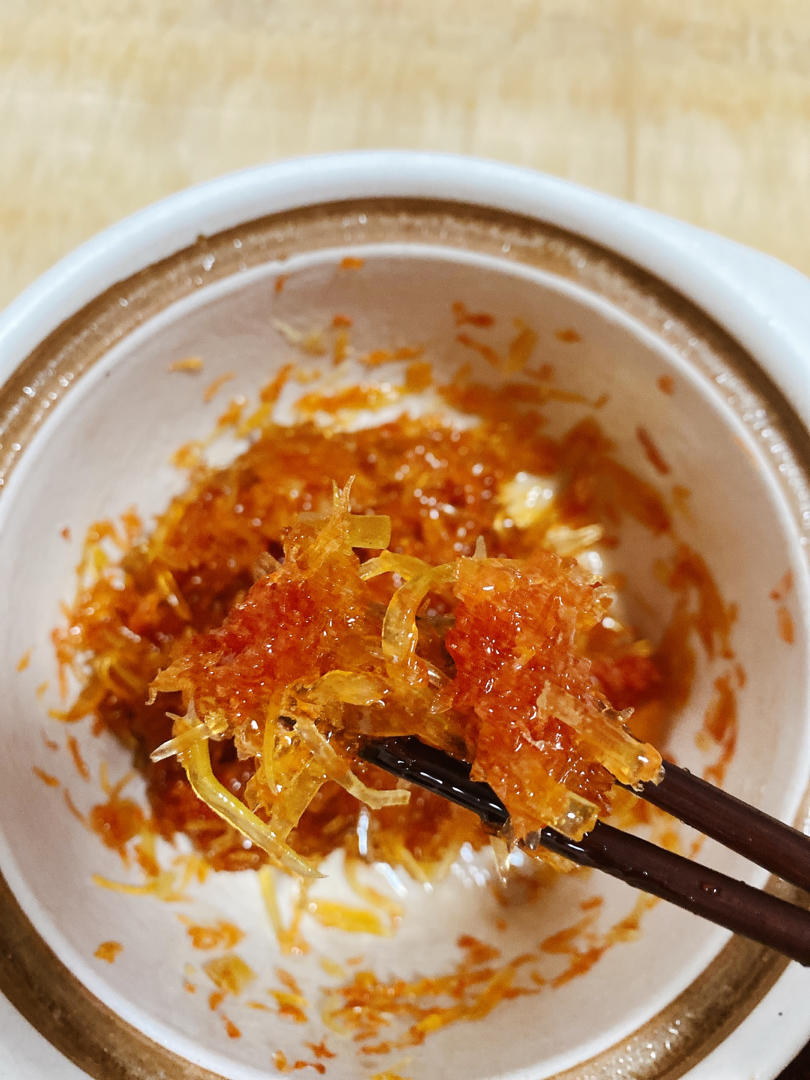 莉莉周NN 做过 2020年09月24日 做法:两个柚子刨皮切细丝泡盐水一小时一个柚子剥肉泡好的柚子皮放砂锅中➕300毫升水➕400克冰糖,熬制冰糖融化放入柚子肉,大火烧开,转中小火,熬一小时,关火放凉,➕蜂蜜70克搅拌均匀放入瓶中置于冰箱保存 2020-09-24