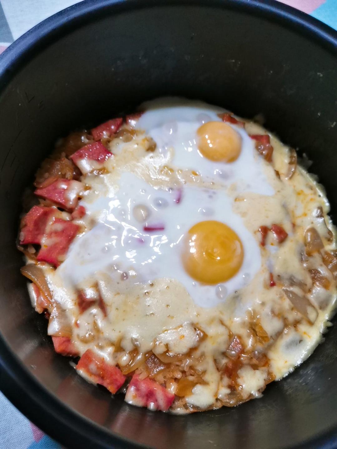 电饭锅版的辣白菜焗饭