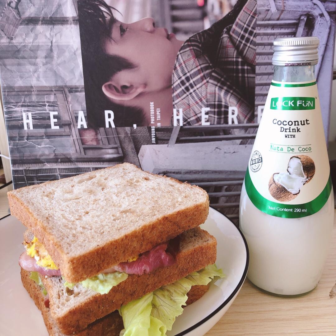 双层煎蛋培根全麦三明治🥪+味多美椰子水饮料🥥