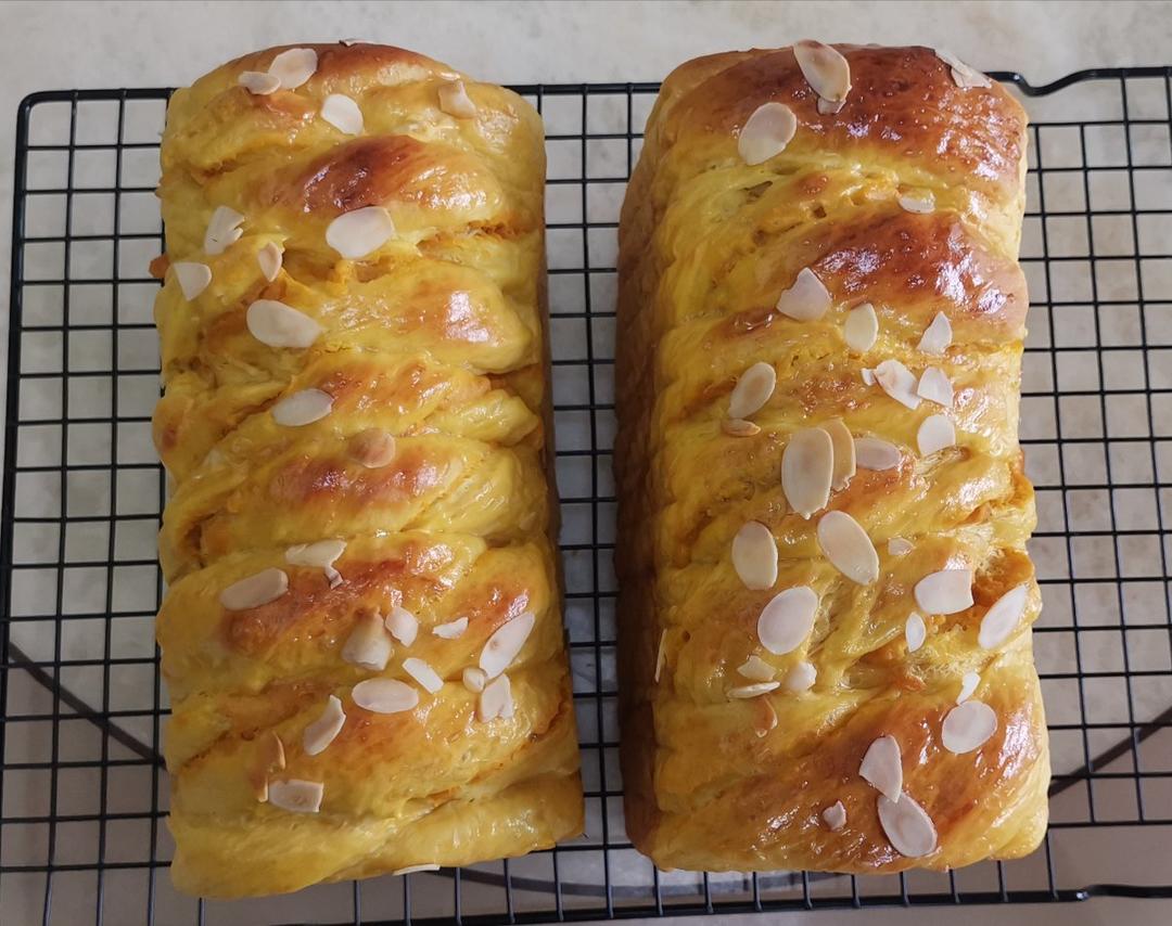 卓卓_mkvn 做过 软绵香醇的南瓜吐司 用的这个方子做了两个土司,因为用了银栗南瓜,水分少,做两份用了210克的牛奶,其他材料直接用两倍量。中间加了南瓜馅用了其他整形,整体很不错。 2020-11-08