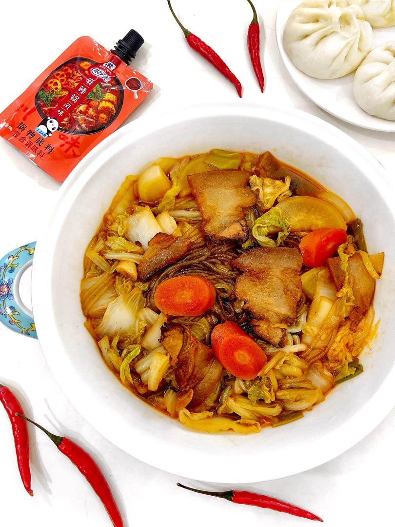 喂你吃一口呀 做过 “川香猪肉白菜炖粉条”冬日里最家常的大烩菜!热呼呼的,太下饭啦~ 大烩菜真的是冬天最爱吃的菜啦特别下米饭!大人小孩都爱吃~平日都是单独用的生抽做的,这次加入了味好美麻辣火锅底料,味道加倍好吃!🤗老公最爱里面的粉条了哈哈,每次汤汁都用来拌饭!大家快试试吧~#晚餐•2020年11月11日# #家常菜# 2020-11-11