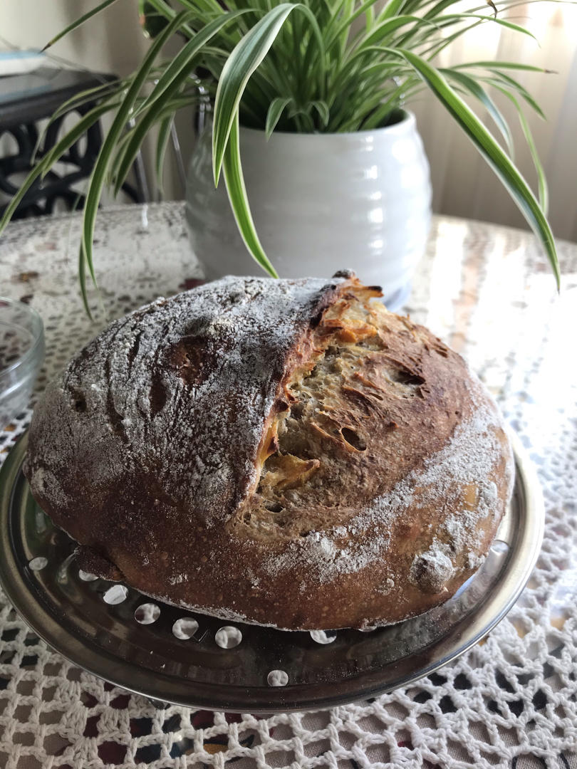 芒果核桃免揉欧包,这次割包倾斜45度角,貌似有耳朵出现?