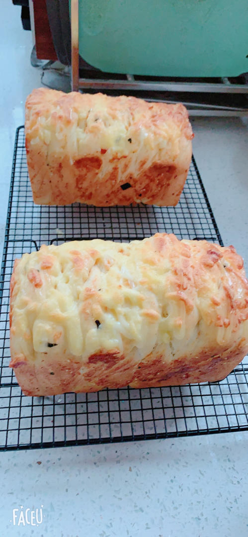 家有两头LV 做过 肉松吐司【超多料香爆马苏里拉】 第一次做这样的面包 擀好大一张饼 哈哈 整形有点复杂 但是还好没手残 效果不错 👍里面放的海苔肉松 低糖吐司盒上火160 下火200 25分钟 2020-11-18