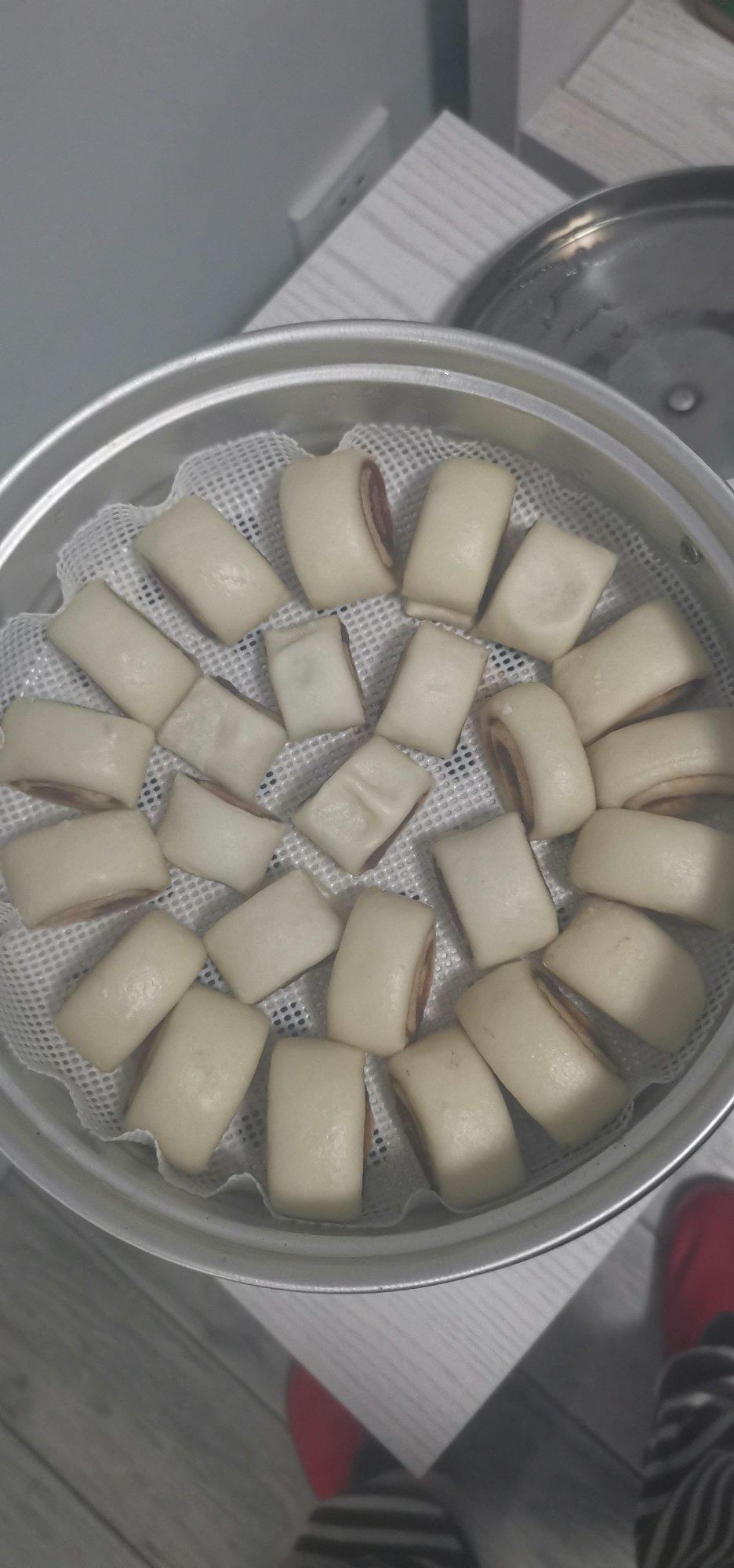 本来想做麻将馒头的,没做成功,结果做成了豆沙卷,还不错。下次继续!