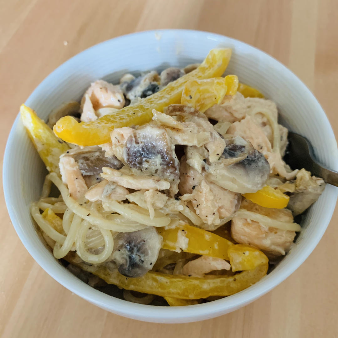 把煮熟的意面捞进酱汁里炒一炒