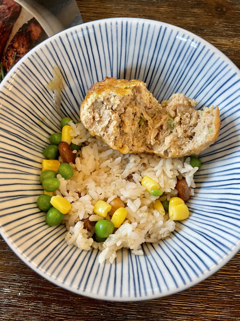 bettyboop啊 做过 好朋友家的传家肉丸子 300g猪肉末200g鸡肉末,放了三勺生抽一勺味霖,1/3cup面包糠代替馒头,一小块姜两根葱切末,其他调味和菜谱一样,直接用手拌匀。用冰激淋勺挖的丸子比较大,烤前每个丸子涂一层油,空气炸锅375f烤20分钟,中间翻面一次。味道不错,有点咸,下次做就不放盐了,再加一勺糖和酒酿应该味道不错。#午餐•2020年12月7日# 2020-12-08