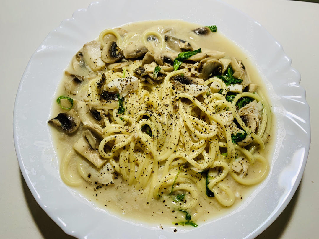 三文鱼菠菜蘑菇菜花奶油汁意大利面