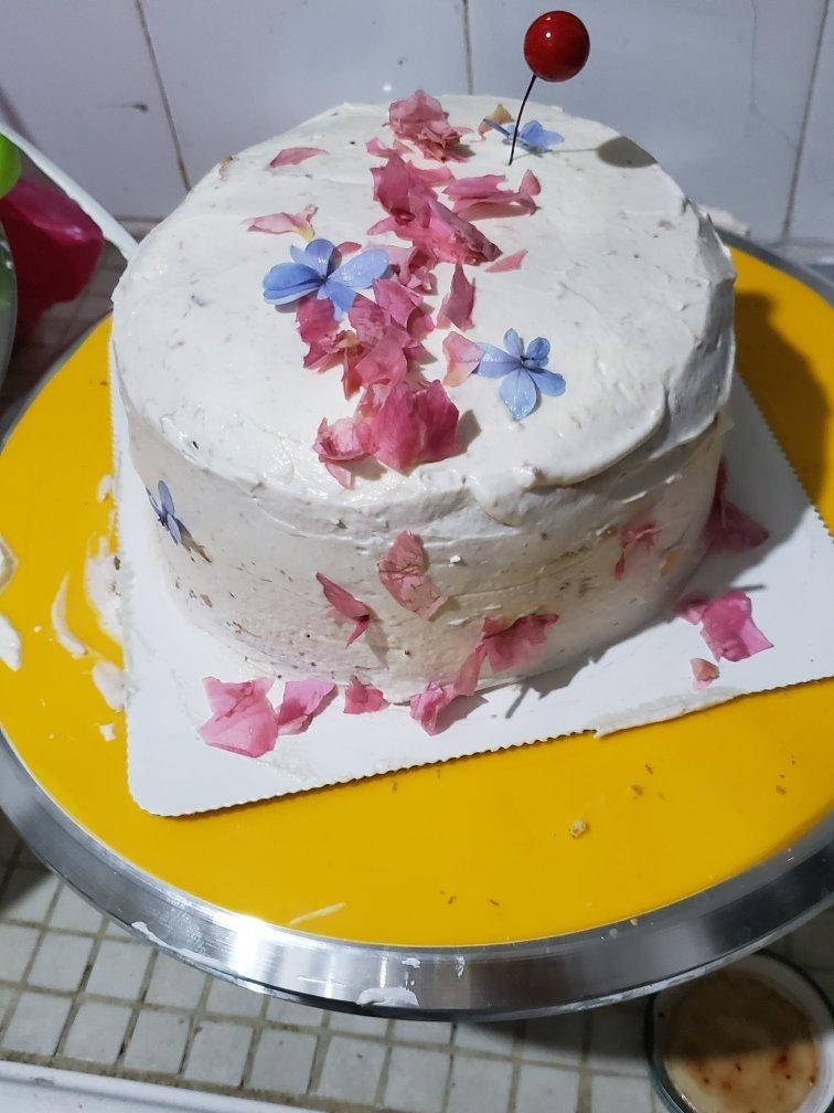 草莓酱的颜色太淡了,想着草莓酱是甜的没怎么下糖不知道甜不甜。今天做了两个蛋糕胚……第一个塌了……这是第二个!抹得奶油面不够好,太赶时间了。还好是自己吃,哈哈哈~