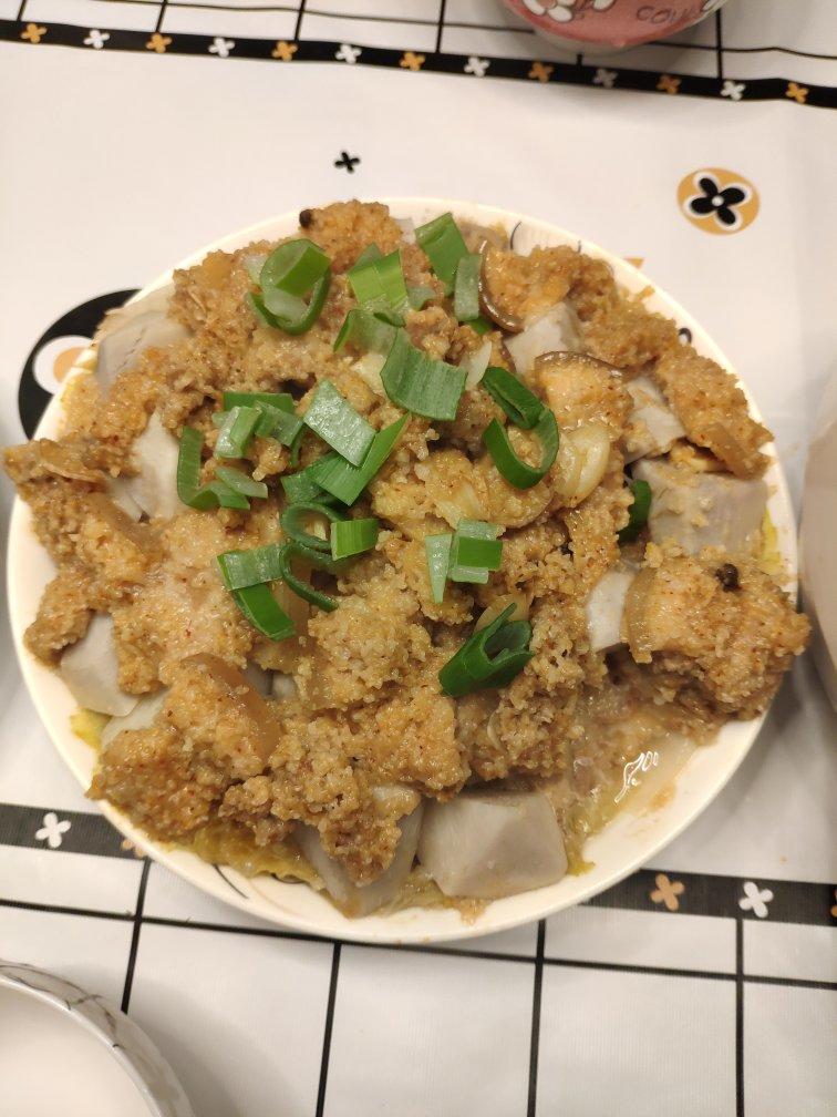 新买的孔师傅的粉,试做了一下,垫的芋头,没放盐,稍淡。肉的味道不错,粉再辣点就好了😁