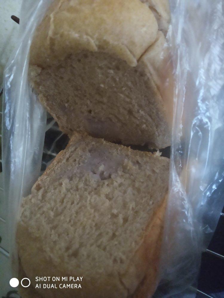 用的高筋粉,全麦粉一样一半 ,夹了芋泥夹心,没想到做出来非常松软,烤的满屋飘香,味道太美妙了!感谢楼主分享!♥