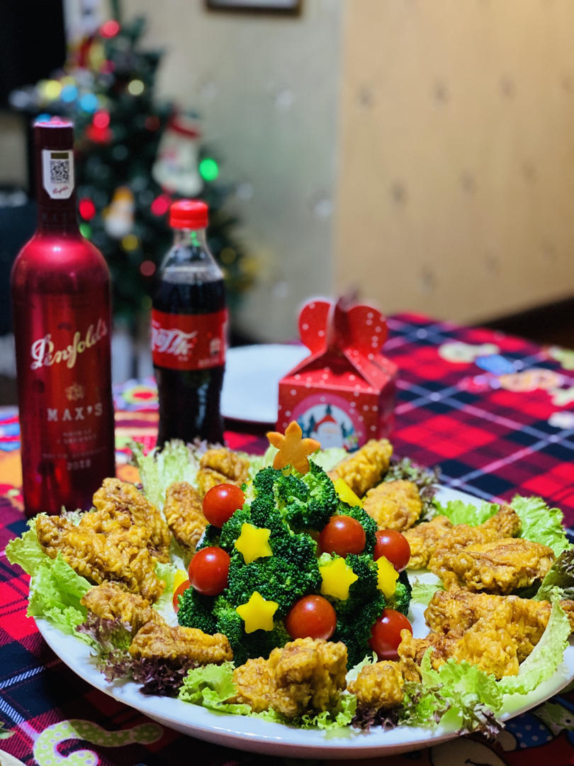 土豆泥不够,圣诞树成了圣诞丛🤣,但很可爱,减脂啊!