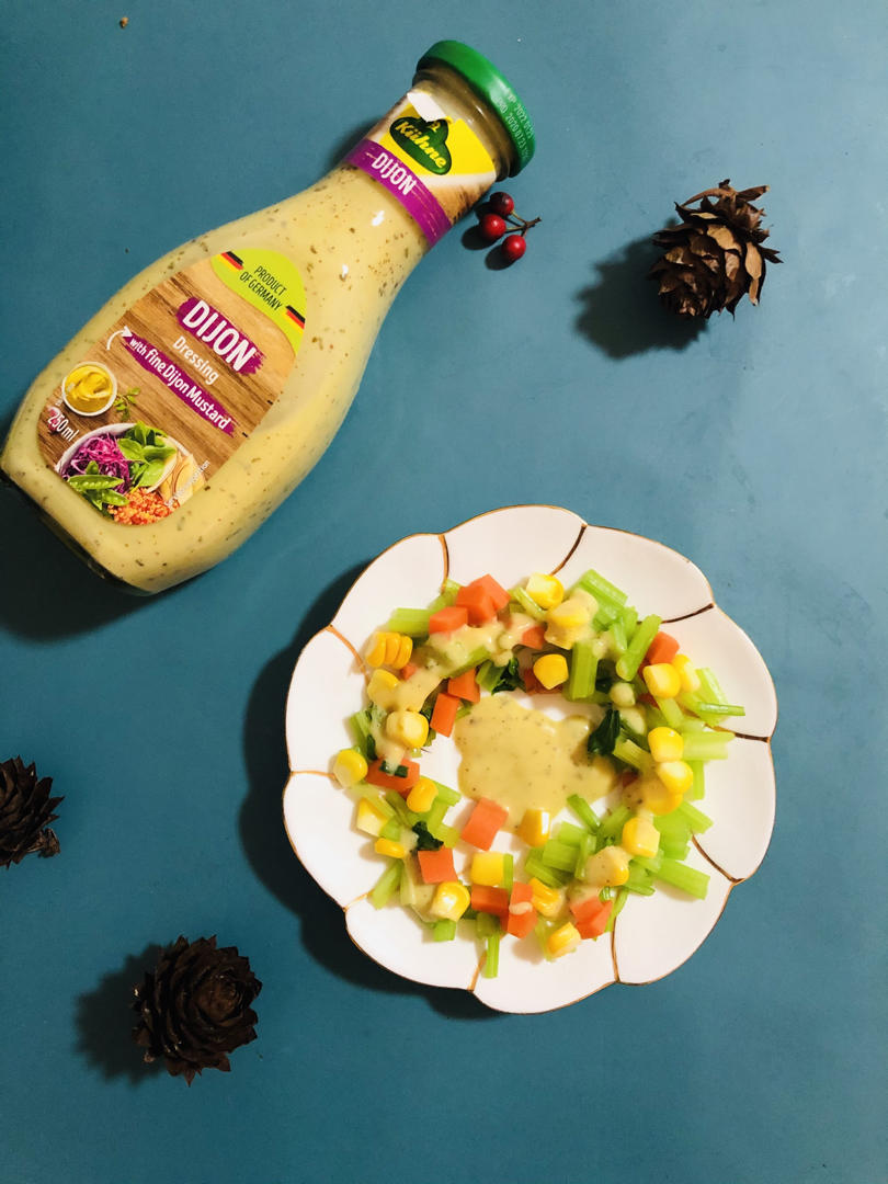 有瓶味道很不错的沙拉酱。拌点蔬菜吃一下