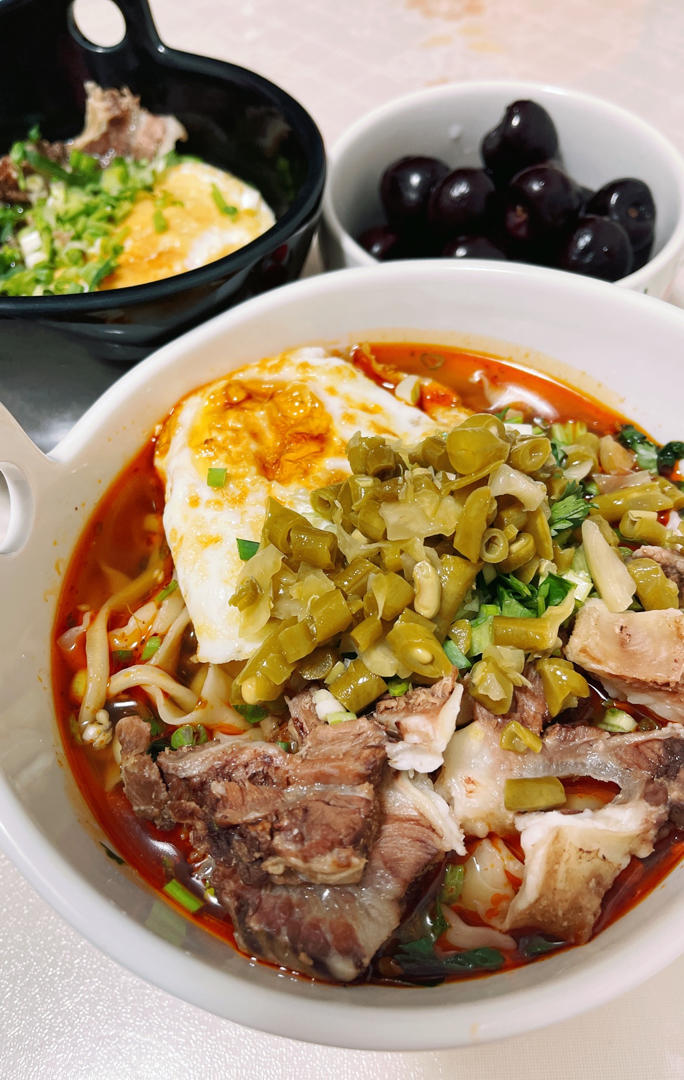 早餐:酸菜牛肉面,清汤牛肉面