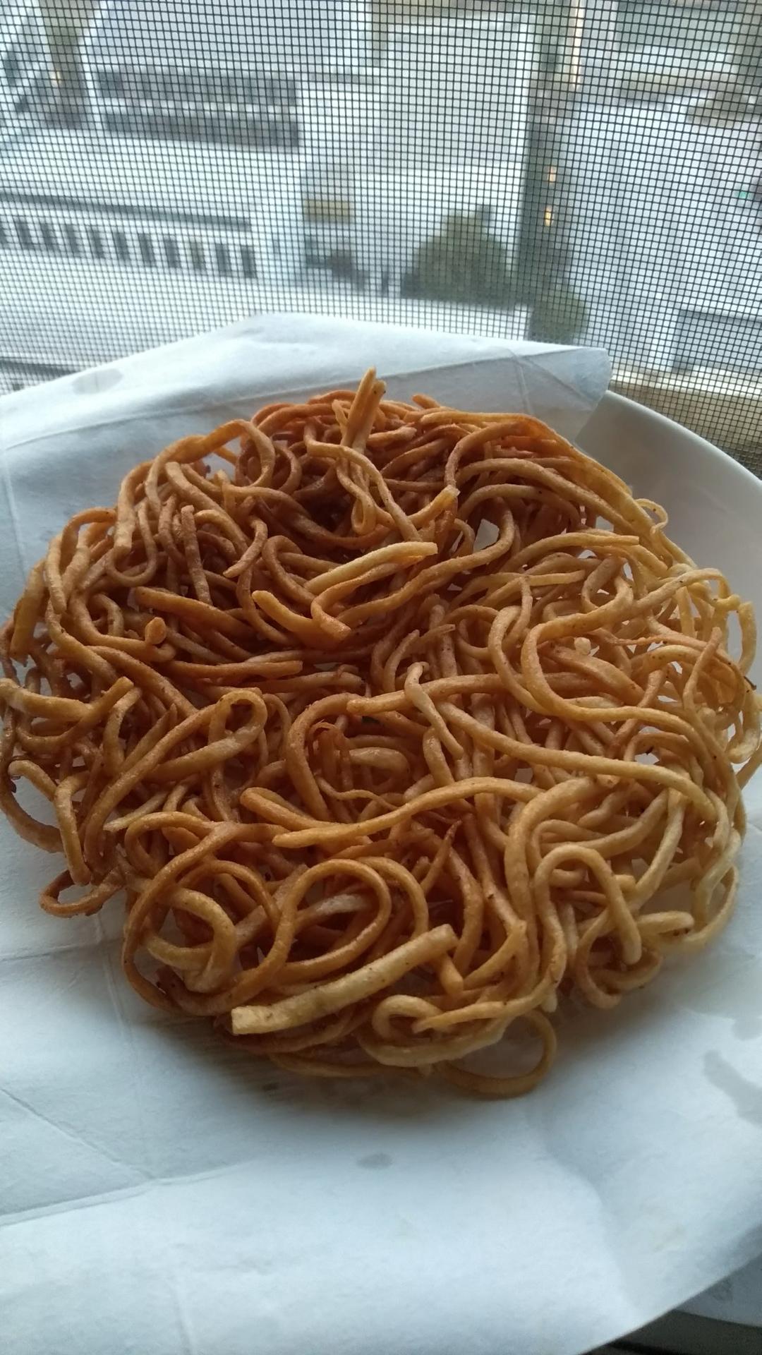 兜兜包豆 做过 2021年01月20日 做面条剩下的一团面,直接擀开切条做成炸方便面了。因为起面的时候加了鸡蛋,感觉出锅有点撒子的味道。那就当撒子吃咯😂比起撒子的常规做法,这个可不简单多了,不用搓成棒棒,不用泡油,省时间省油又省事,美包包。面条煮开出锅过凉水,盐,烧烤粉,十三香,想起什么放什么,拌匀,直接放油锅里边儿炸就好了。 2021-01-20
