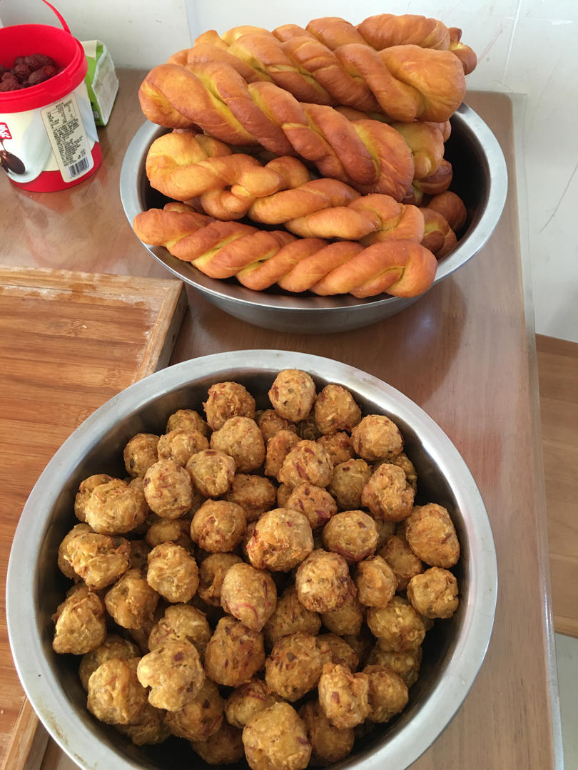 快过年的时候开油锅炸了一些丸子、麻花、油炸糕……