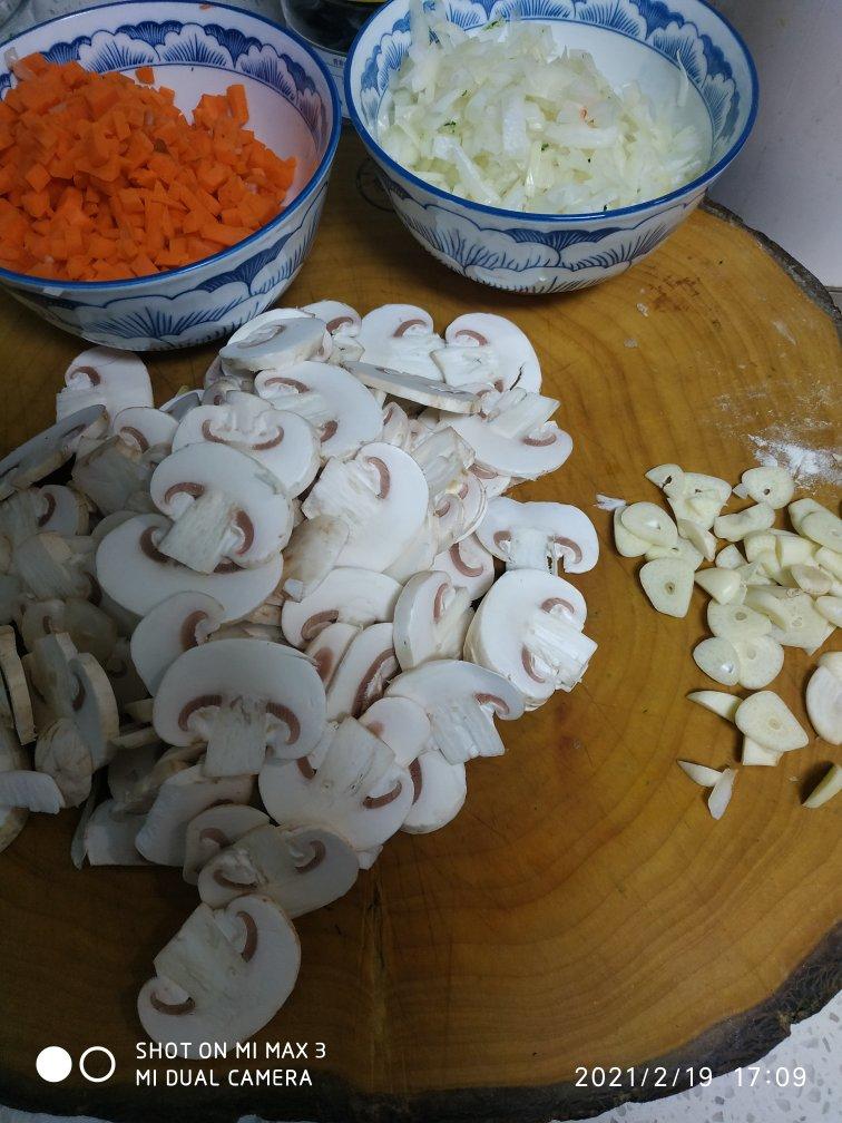 第二次交作业,这一次口蘑没有切丁,而是切片的,总之还是非常好?