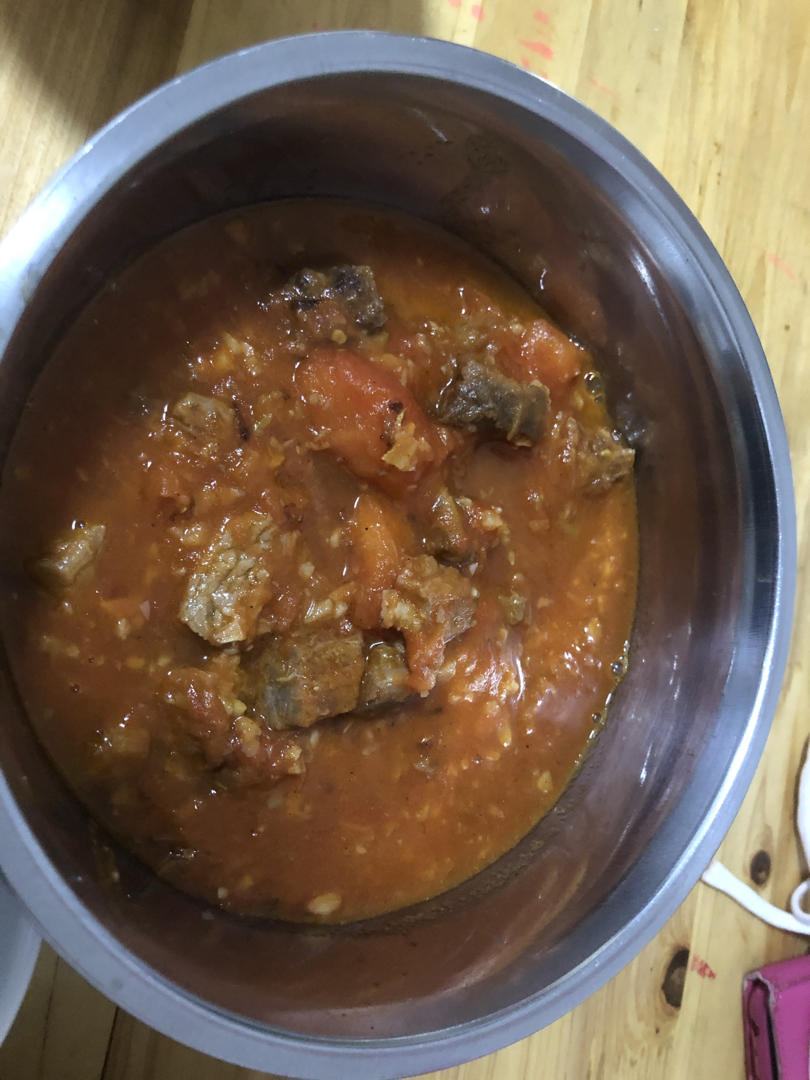 不到一斤牛肉,三个大西红柿,蒜 葱 姜都比较多,蒜香味比较重