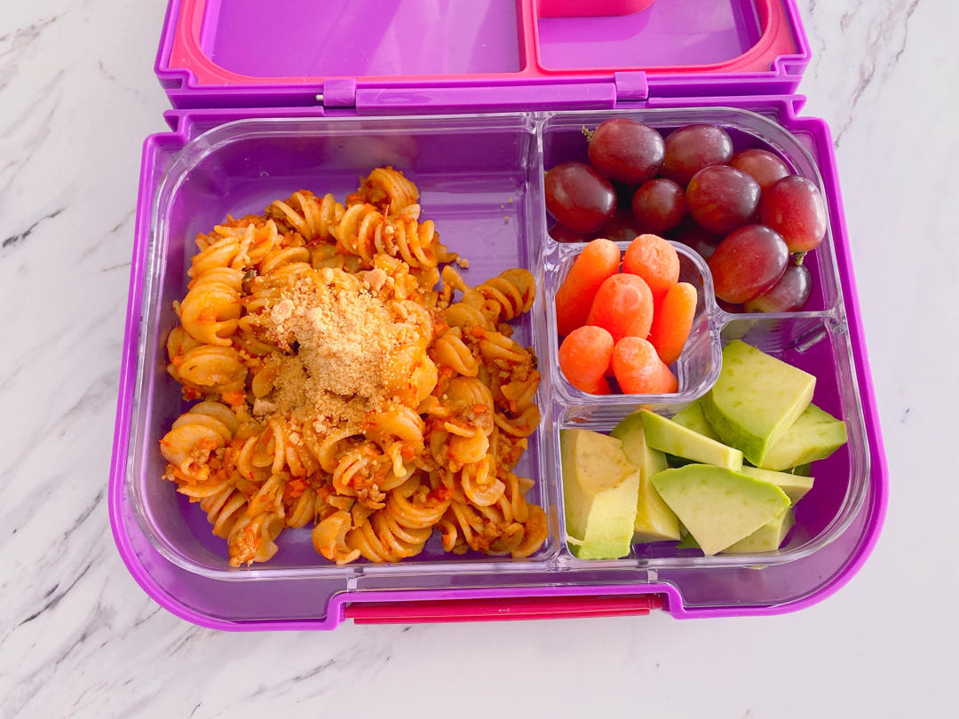今天吃啥米 做过 便当🍱lunchbox 合集 记录下做过的儿童便当🍱 #mommy's cook# rotini w meat sauce+avocado +grapes+carrot #Nana's lunch box# 2021-02-26