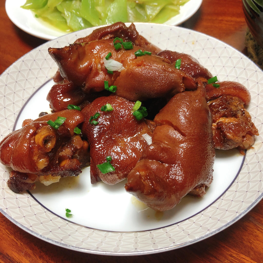 今日晚餐:香辣猪蹄 酸辣豆芽 菌菇牛肉 清炒笋片