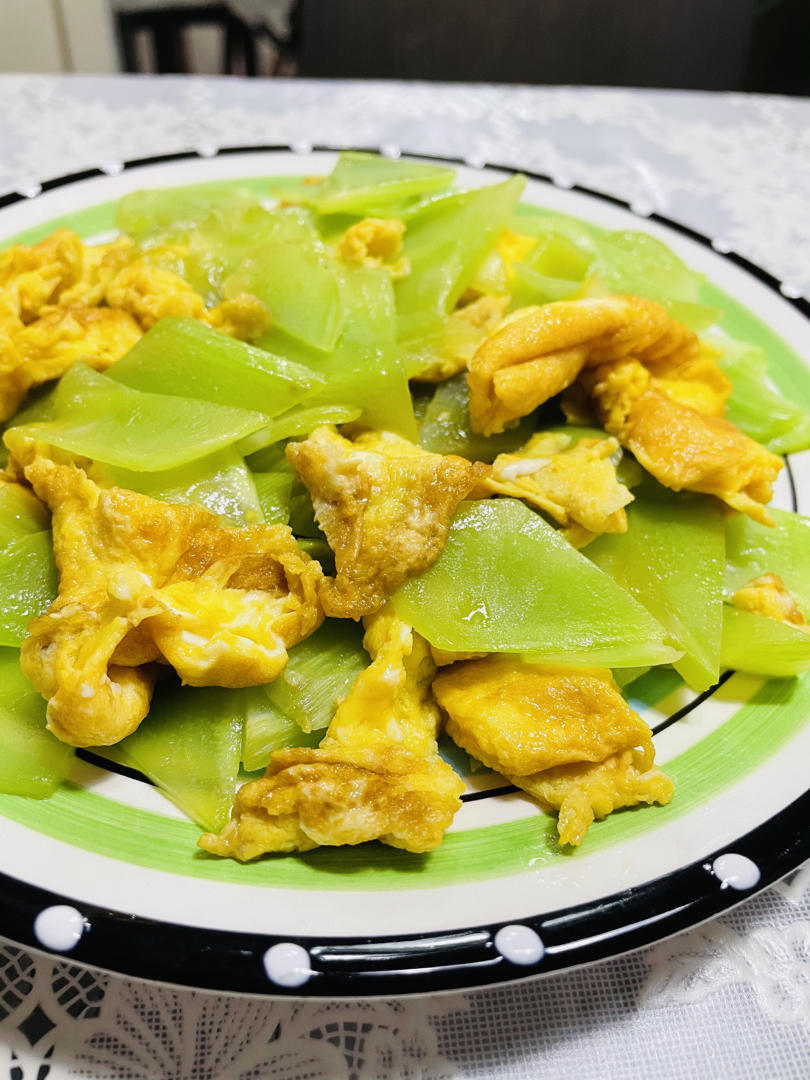 鸡蛋搭配莴笋,只放盐,和一丢丢海鲜酱油