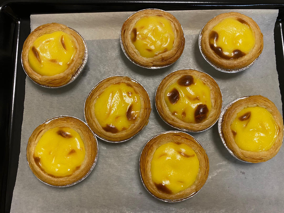 第一次做蛋挞,成功,没有加炼乳,减半的量做了8个大蛋挞