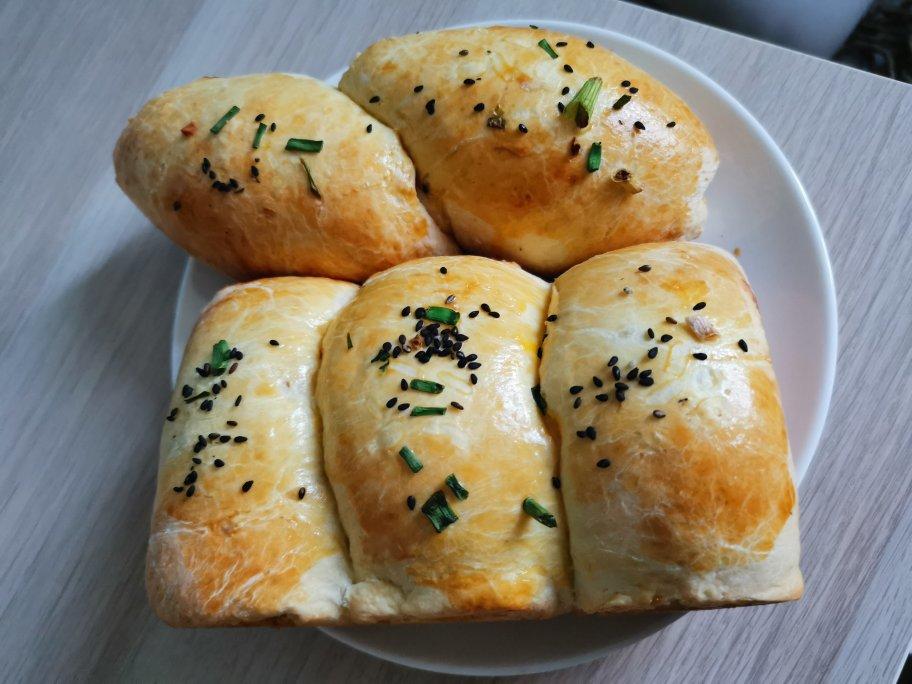 悠悠小客 做过 肉松香葱土司 做了2次,都发得不多…估计是因为没有清水的缘故,以前烘培老师说面包发起来最好用清水,下次改良再试试,不过面包小巧看着挺可爱的#晚餐•2021年4月5日# 2021-04-05