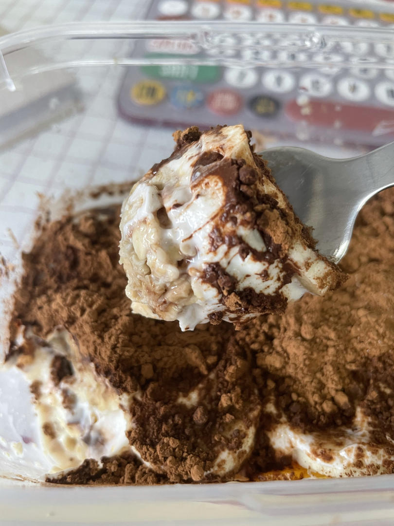 西西sss 做过 午餐•2021年4月22日 隔夜燕麦~减脂也要吃得开心耶#午餐•2021年4月22日# 简爱的无糖酸奶➕一勺燕麦➕一勺燕麦麸➕一根香蕉➕1/3芒果,撒无糖纯可可粉,像在吃提拉米苏,超级满足~ 2021-04-22
