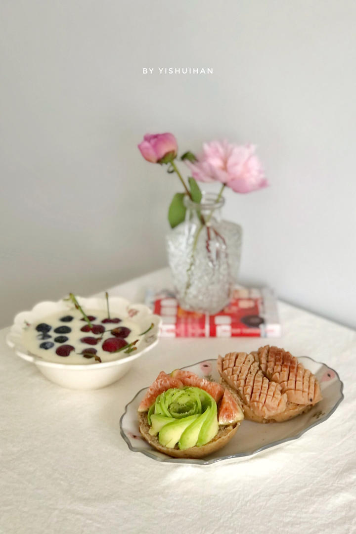 香肠贝果三明治🥯&无花果鳄梨开放式三明治🥑&酸奶水果碗🍒