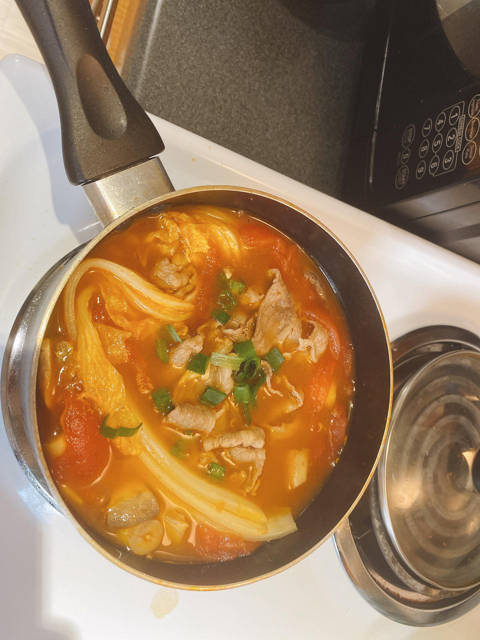 没有金针菇 就用的白蘑菇,还加了几片白菜🥬