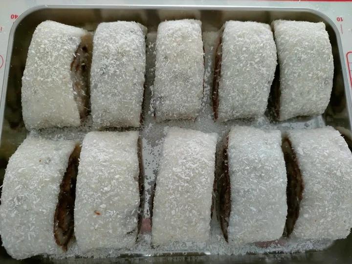 往事随风9esy 做过 东菱面包机自制年糕 糯米500g洗净,泡水过夜,天热放冰箱。将糯米滤出倒入面包机,加入平米面的清水,年糕模式。将糯米团倒入厨师师5档20分钟,适量食用油倒入一个大保鲜袋,油揉均匀后放入糯米团,用擀面杖擀平,保鲜袋上层剪开掀起,250g豆沙均匀铺上摸平,卷起后撒上椰蓉,切段即可。 2021-07-20