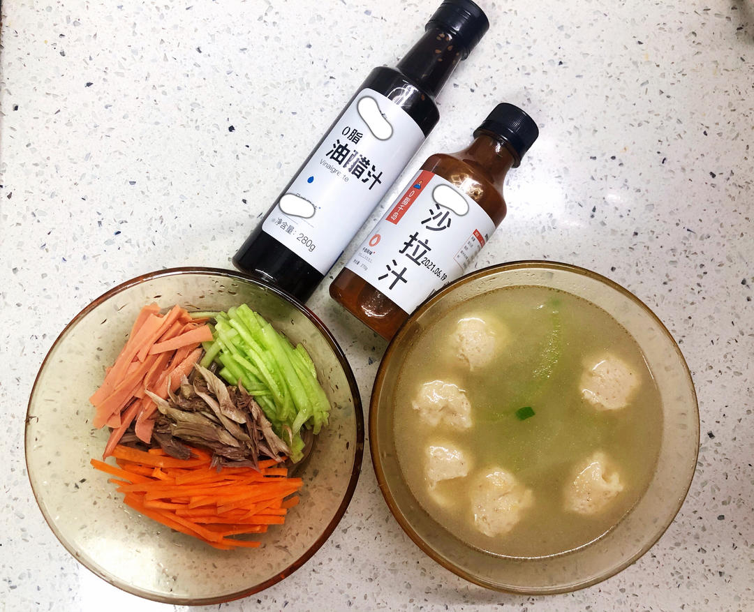 今天下大雨,家里现有的食材,做了鸽肉丝荞麦面减脂餐。
