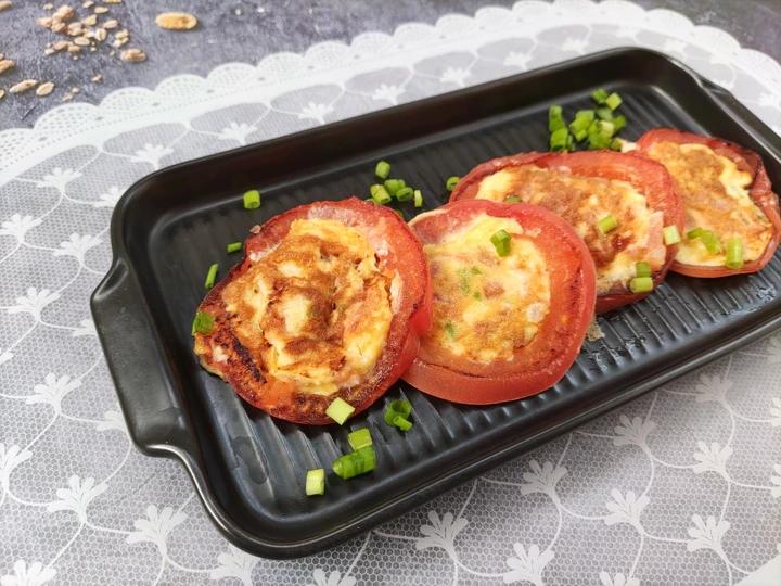 雨兔雨兔在努力 做过 早餐•2021年8月16日 #早餐•2021年8月16日# 《一刻.早餐2021/8/13》 1.西红柿切片,水杯压出一个圈,挖出里面的番茄剁碎2.鸡蛋,小葱末,火腿肠碎,番茄碎,面粉,盐,搅拌均匀3.锅刷油,在西红柿圈里倒入2,小火煎熟。 2021-08-16