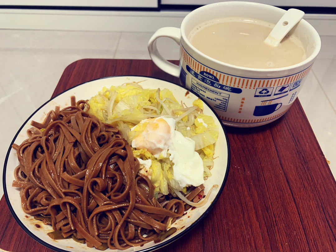 红枣豆浆+荞麦面条🍝