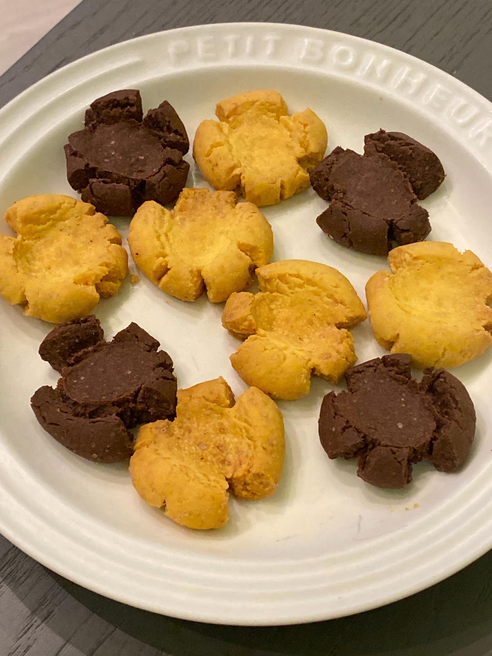 方子减半做了16块小饼干!很酥松哦!8块原味8块可可味