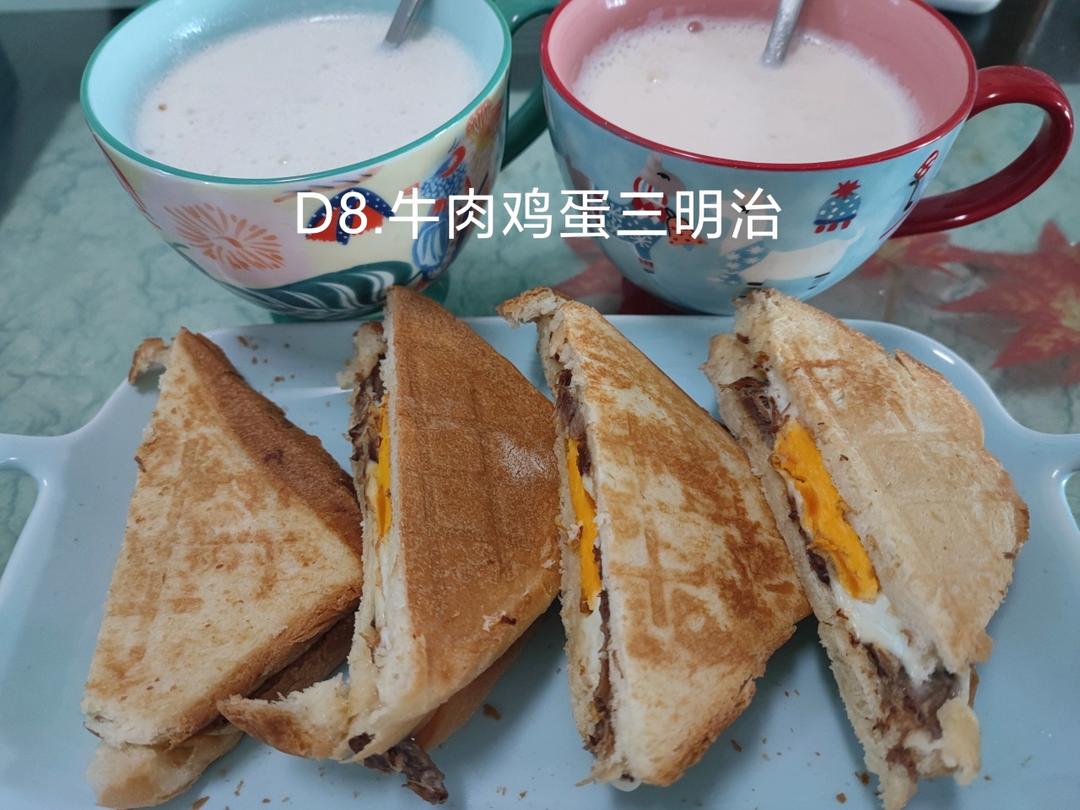 D8.麦片牛奶+牛肉鸡蛋三明治。纯西式的早餐,中国胃也能对付下去吧?!