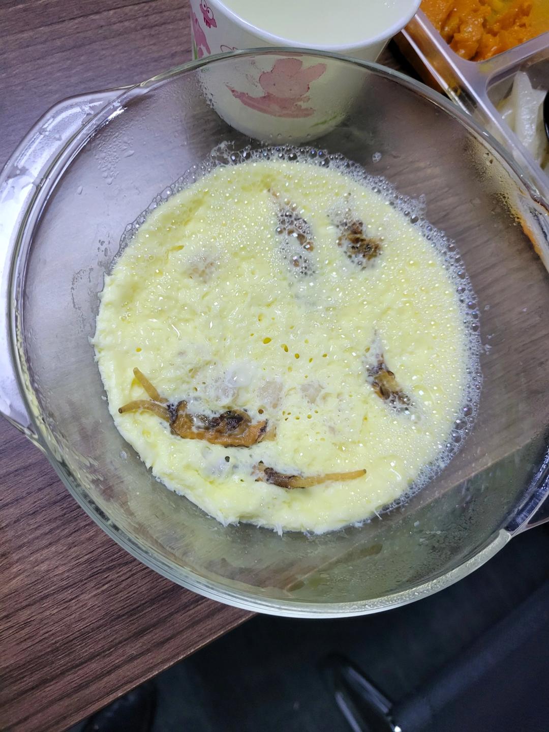 垂垂儿 做过 简单鸡蛋羹(微波炉版) 办公室可以做的微波炉鸡蛋羹!放了泡了一上午的干贝和蛏干。这次水多放了点,目测大概水和鸡蛋1比1。除了不好看和忘记放盐巴之外,还是挺嫩的。#午餐•2021年11月9日# 2021-11-09