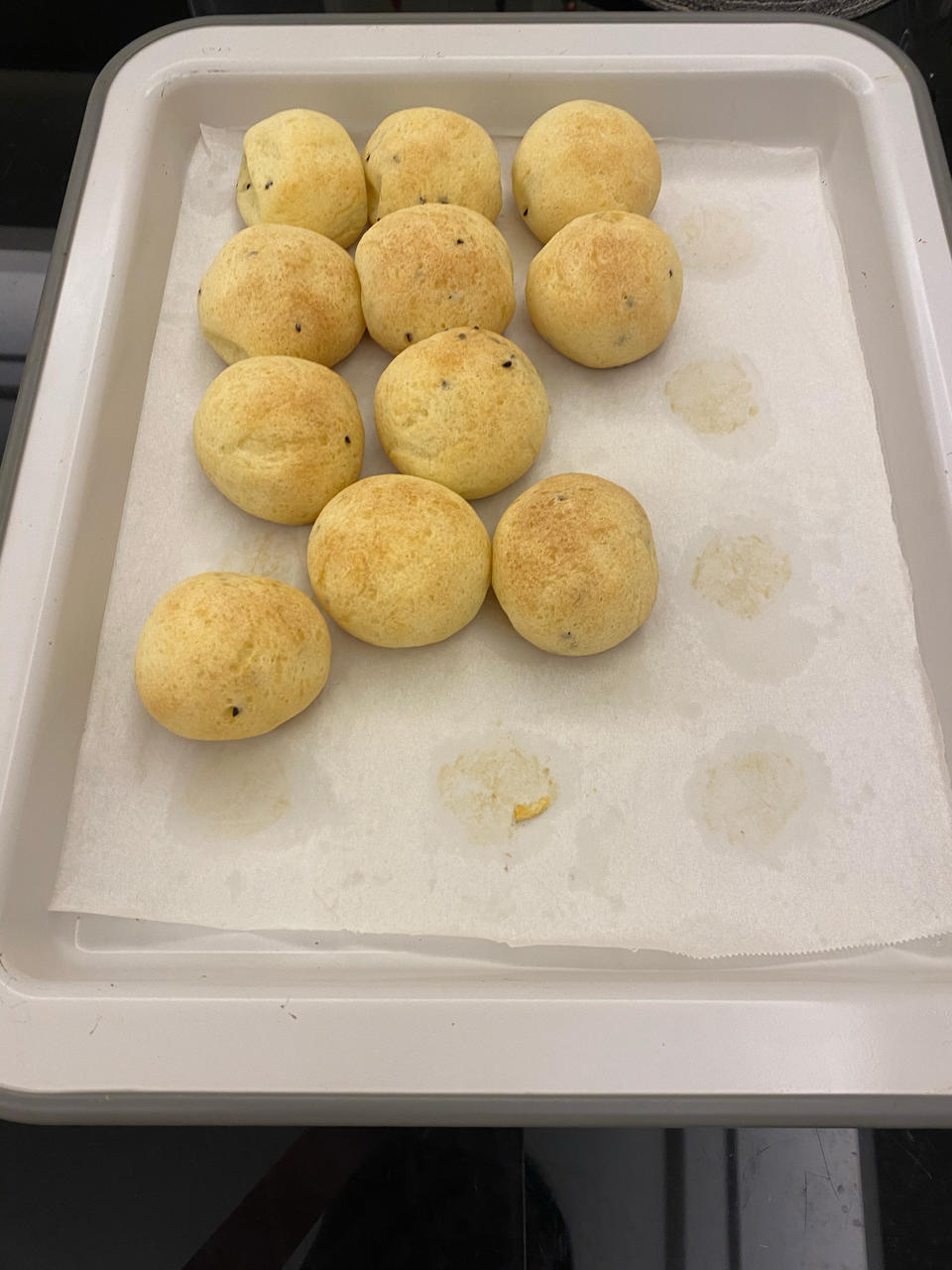 heiheida 做过 麻薯包、恐龙蛋 第三次做:底部还是焦掉。180度25分钟,倒数第二层。展艺的粉。这回用的是常温的鸡蛋和牛奶,椰油也是常温的,没有之前那么粘手了。不知道是不是揉得不够到位。下回试试170度25分钟。 2021-12-16
