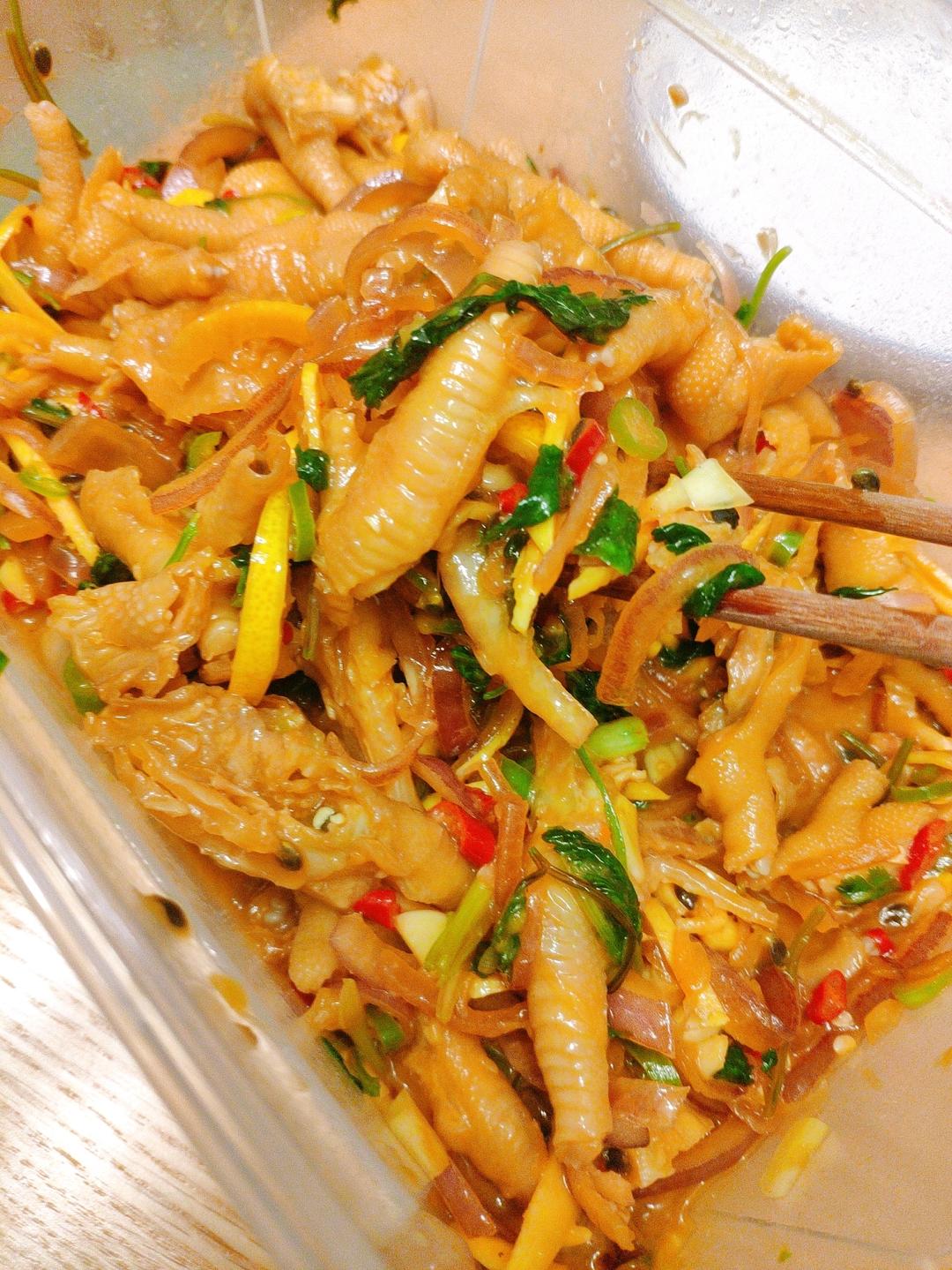 银离 做过 想妈秘制百香果鸡脚(家庭版) 好长一段时间没做柠檬鸡爪吃了,前天凌晨两三点做了半大盒,两斤鸡爪,放了很多百香果,还在百果园买了进口柠檬王。刚腌制完觉得有点酸,还后悔弄太酸了,隔了一个晚上,就不酸了,非常入味好吃;隔了两个晚上,就觉得味道相当好了。送了一盒给朋友,被夸赞可以开饭店了,味道真的是好。 2021-12-16